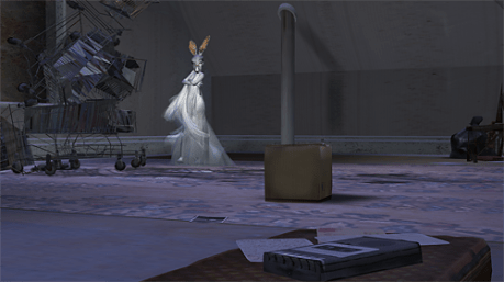 ” …I spent a great deal of time trying to find a way to have the cassette tapes play the audio in world effectively. Unfortunately SL’s audio capabilities are terrible and the choices I had were not going to work. For example the region could be carved up into individual parcels which would allow the audio to play but that would necessitate a reduction in the amount of tapes… and since it is an ongoing work where i may add more audio that would be problematic. So what that would have meant is that once an avatar entered a subdived parcel they would hear the audio as long as they were within its boundaries. This eliminates the “discovery” element which is present in all my work, it would also force me to spread evenly the tapes which creates a degree of predictablility. Another option was to use an audio hosting provider like dropbox which would still take the viewer away from the build but would have no visuals. The choice would not work because it plays audio immediately provided they are fairly short in duration which my machinima are not. So I finally decided to use Youtube because though it does remove the viewer from the setting it also allows for other benefits. Each work was given visuals which allowed me to include subtle imagery and pacing which helped to define my personal thoughts on her. Showing both the micro and macro aspects of that which surrounds us. The Youtube videos have also acted as a “hook” which has brought quite a few non SL users in world to experience the work. There have been around ten thousand visitors to the exhibit so far from both inworld residents as well as visitors to the RL Santa Fe new media festival where it was being shown and while the Youtube method was not ideal it was the best I could come up with to get past the mediums limitations… “